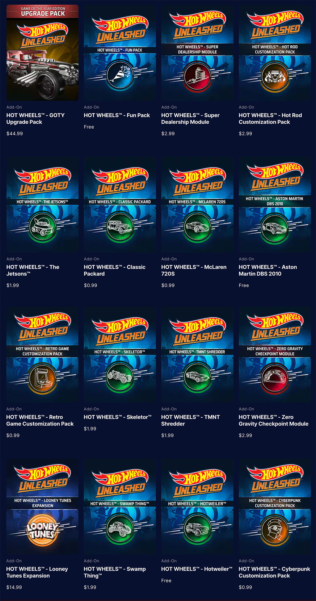 DLCs – Expanding the Hot Wheels Universe: Post-launch, Hot Wheels Unleashed really came into its own through its extensive downloadable content (DLC) releases. Each DLC brought fresh, exciting content that expanded the game’s universe, from adding new vehicles to introducing iconic brands like Looney Tunes, Batman, and Spongebob Squarepants. These DLCs weren’t just new cars and tracks—they provided a way for the game to grow and engage players over time.