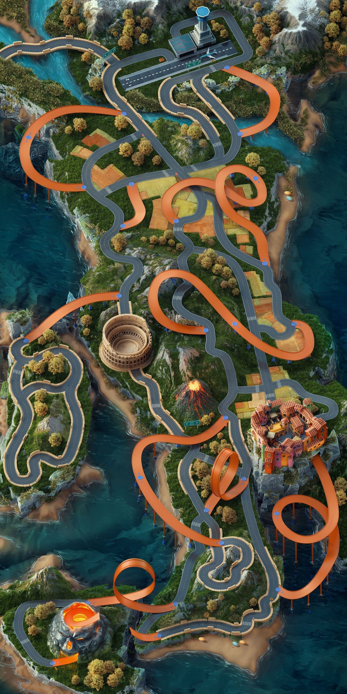 Logo & Key Art: Creating the logo and key art for Unleashed 2 was a significant step in visually defining the game’s identity. The team faced the challenge of ensuring that the artwork captured the bold, fantastical nature of Hot Wheels. This wasn’t just another racing game, so we emphasized the inclusion of the iconic orange track, nemesis creatures, and larger-than-life environments. These elements needed to be visually cohesive while giving players an instant sense of the high-speed action they could expect from the game.